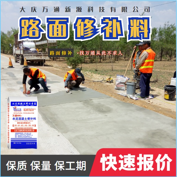 大慶萬(wàn)通新源科技有限公司獨(dú)有的混凝土路面高強(qiáng)速補(bǔ)料,是水泥混凝土路面病害修復(fù)的好材料。疲勞、凍融循環(huán)、彎曲壓力、滲水和基層破壞等原因都會(huì)引起水泥路面的破損,從而帶來(lái)高昂的維護(hù)費(fèi)用。與以往的剛性修補(bǔ)方法不同,混凝土水泥路面維修速補(bǔ)膠提供了一種獨(dú)特的柔性修補(bǔ)產(chǎn)品和技術(shù),高柔性、高抗拉性,可跨伸縮縫施工和高抗壓性使得混凝土快補(bǔ)產(chǎn)品為水泥混凝土路面提供了******性的修補(bǔ)。傳統(tǒng)的剛性修補(bǔ)方案,如環(huán)氧砂漿和快干水泥產(chǎn)品,由于其自身的粘結(jié)失效,抗疲勞性低以及與原路面不同的伸縮系數(shù),修補(bǔ)面會(huì)在短時(shí)間內(nèi)失效或產(chǎn)生新的裂縫,需要反復(fù)修補(bǔ),有效期短且費(fèi)用高昂。大慶萬(wàn)通新源科技有限公司的混凝土水泥路面維修速補(bǔ)膠可以隨原路面一起伸縮,移動(dòng),從而避免了粘結(jié)失效和產(chǎn)生新裂縫。萬(wàn)通快補(bǔ)產(chǎn)品優(yōu)異的粘結(jié)性、柔韌性和高防滑性,特別適用于水泥路面的淺層粘合修補(bǔ),多邊角混凝土板層修補(bǔ),跨伸縮縫修補(bǔ)以及路面沉陷修補(bǔ)。萬(wàn)通混凝土病害修補(bǔ)料針對(duì)混凝土起皮起沙、斷板裂縫、蜂窩麻面、坑槽露石子、漏筋掉皮、橋梁的掉皮漏筋快速通車(chē)使用時(shí)間長(zhǎng)。應(yīng)用萬(wàn)通快補(bǔ)產(chǎn)品,施工后一天就可以恢復(fù)交通。大慶萬(wàn)通新源科技有限公司的萬(wàn)通水泥路面維修速補(bǔ)膠適用于高速公路、機(jī)場(chǎng)路面、農(nóng)村村村通路面、廠坪、學(xué)校操場(chǎng)、市區(qū)公路、小區(qū)路面、橋梁、水泥路面的修補(bǔ)。使用萬(wàn)通特快補(bǔ)材料修補(bǔ)路面可以一勞永逸! 水泥地面起砂怎么辦,混凝土修補(bǔ)劑混凝土地面起砂,混凝土地面修補(bǔ),地面起砂怎么辦,